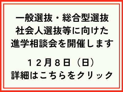 2023年12月9日(土)に「一般選抜・総合型選抜に向けた個別相談会」を開催します。...