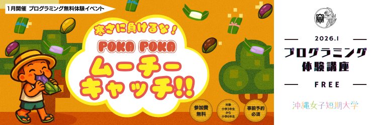 本学は、例年に引き続き沖縄県が実施します「令和7年度 沖縄未来のIT人材創造事業」のITスキル習熟部門に選定され、2016年度より企業と本学が共同で実施している「親子プログラミング講座を通した効果的なプログラミング教育の在り方に関する調査研究」の研究内容に基づき、小学3年生以上を対象に2026年1月にも親子プログラミング体験講座を実施いたします。