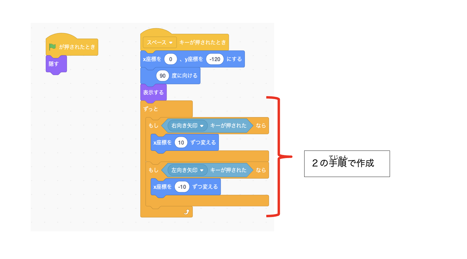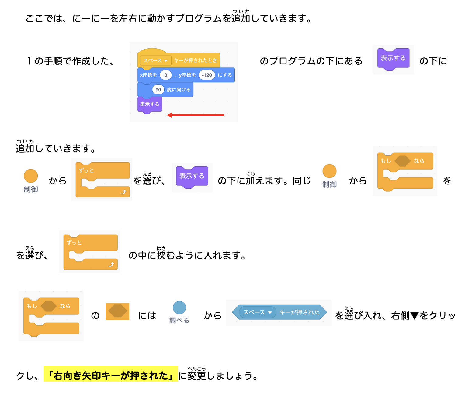 2 矢印キーでにーにーを動かす