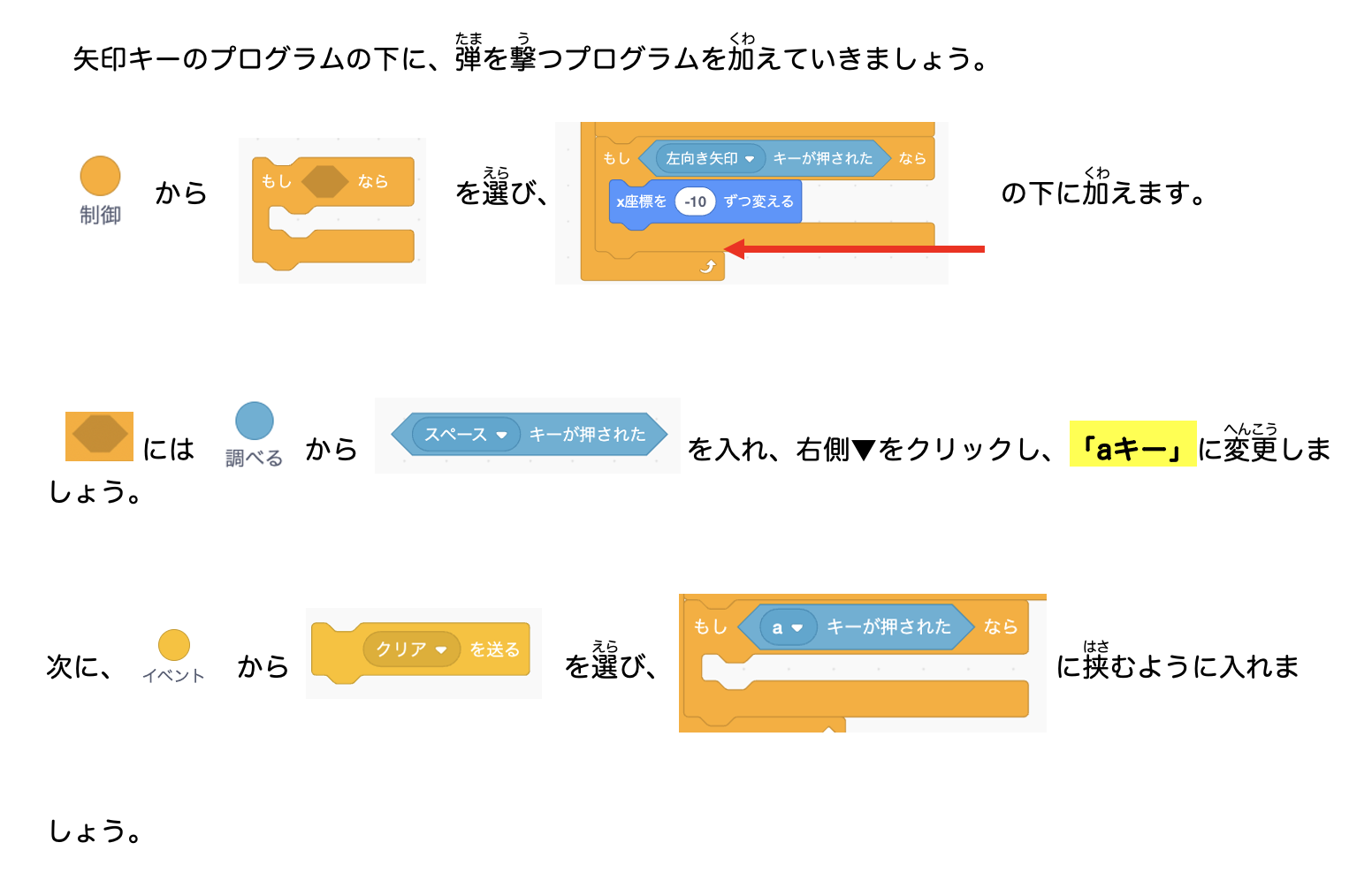 ← 2 矢印キーでにーにーを動かす