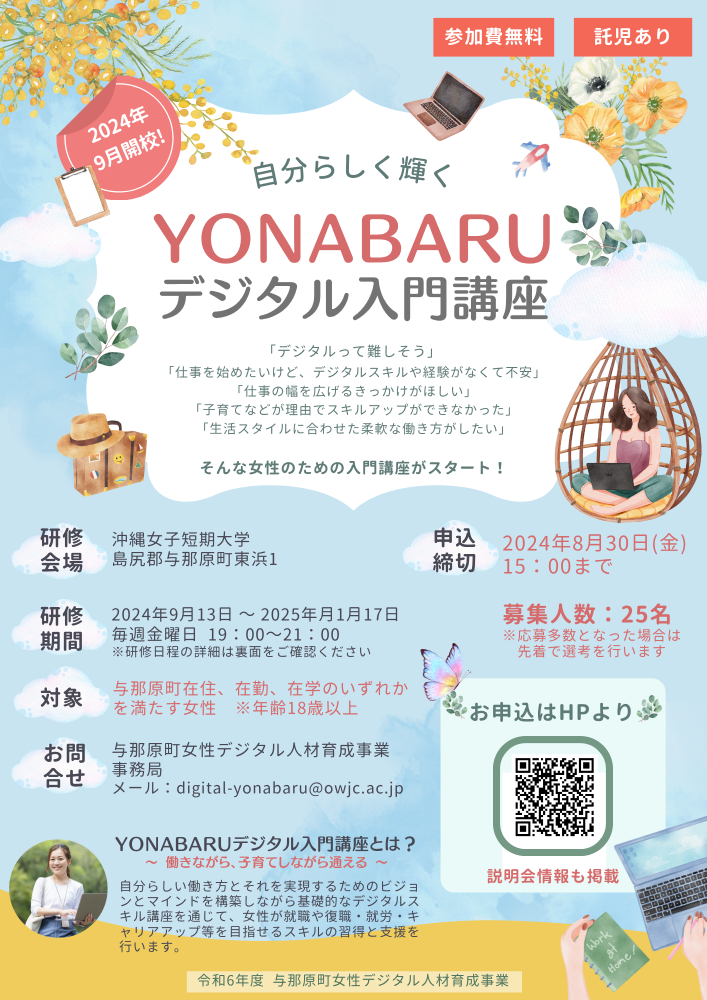 地域経済の活性化を担う人材の育成を目指し、「YONABARUデジタル入門講座」を開講いたします。